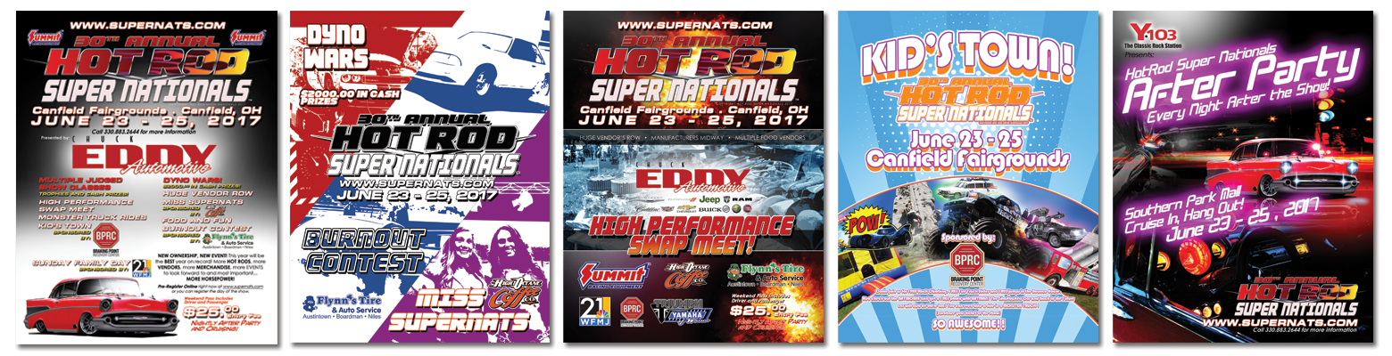 GoFetch Design LLC is proud to have designed and presented the logo and artwork used for the 30th Annual HotRod Super Nationals, formerly the Steel Valley Super Nationals. This high powered automotive spectacle draws crowds and vehicles from all over the state and surrounding to bring some of the coolest cars around to Canfield, Ohio. We hope you enjoyed the show this year and look forward to next year’s event!