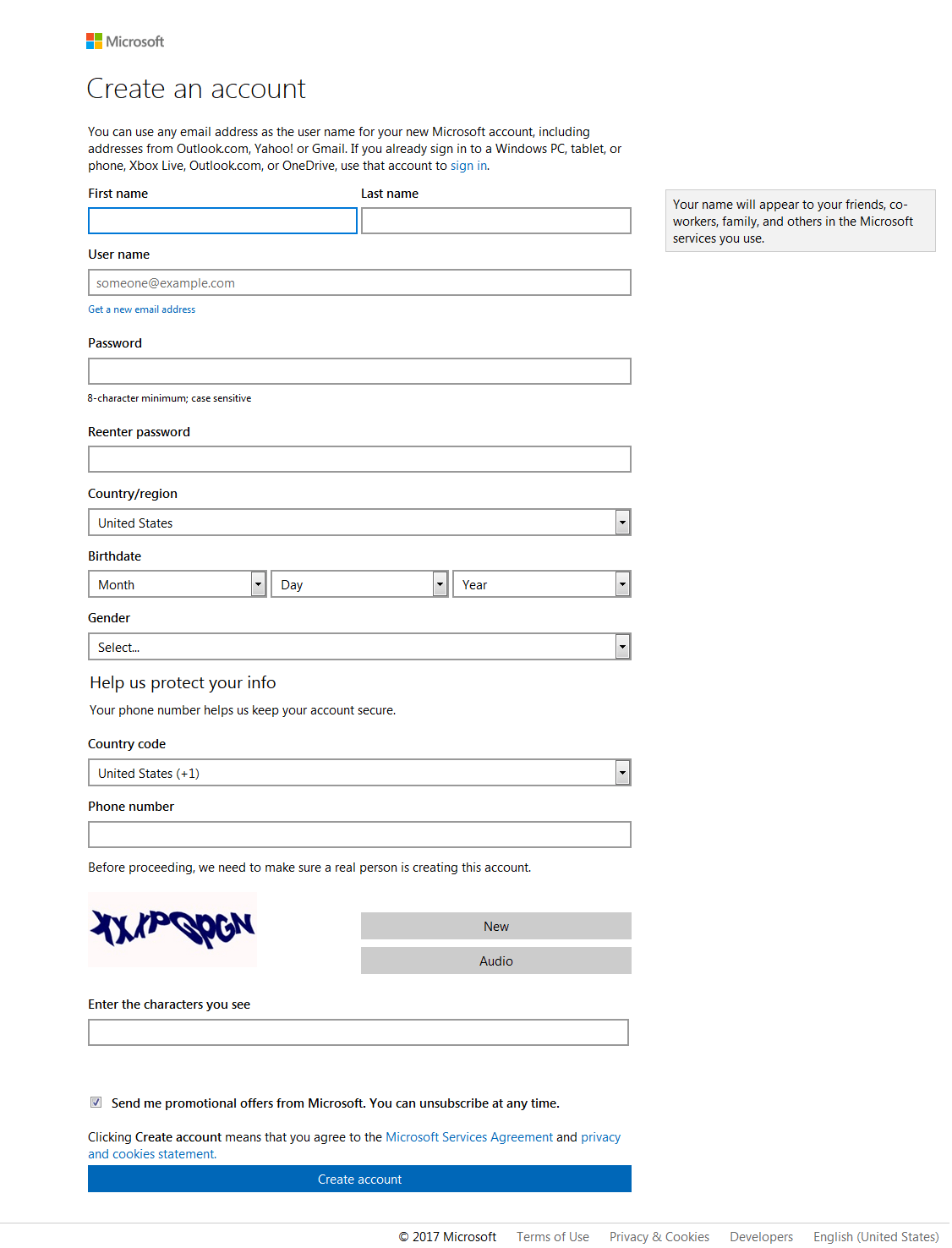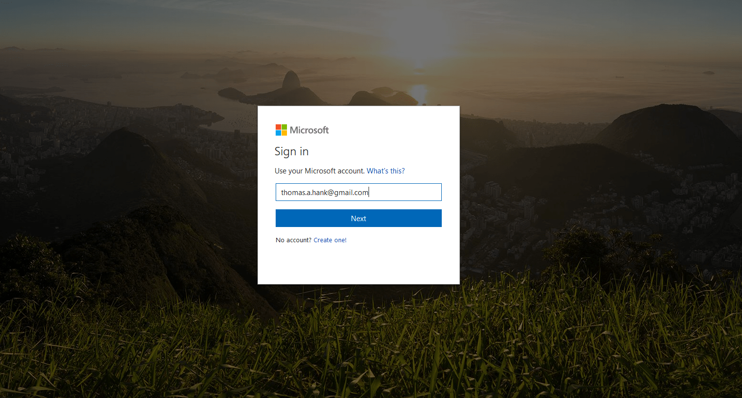Fill out the ‘Create an Account’ form to begin. Microsoft is extremely secure and should not trigger any antivirus prompts here if running them.