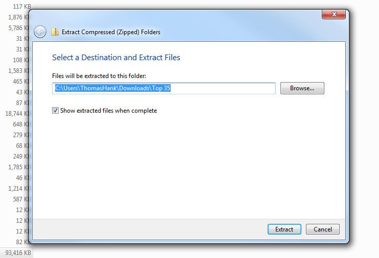Once you have chosen a location, the filepath destination will be displayed in the popup window. Select ‘Browse’ to modify this destination if you would like to change where they extract to. If you are satisfied with where the files will now be extracted to, click the “Extract” button.