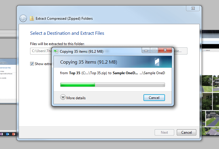 Wait for the files to be copied from the Zip folder to the destination of your choice.